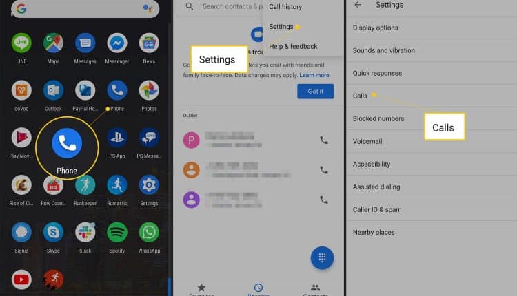 - Put the Phone interface’s Search bar, then sepect the three vertically aligned dots to bring up a drop-down menu.
